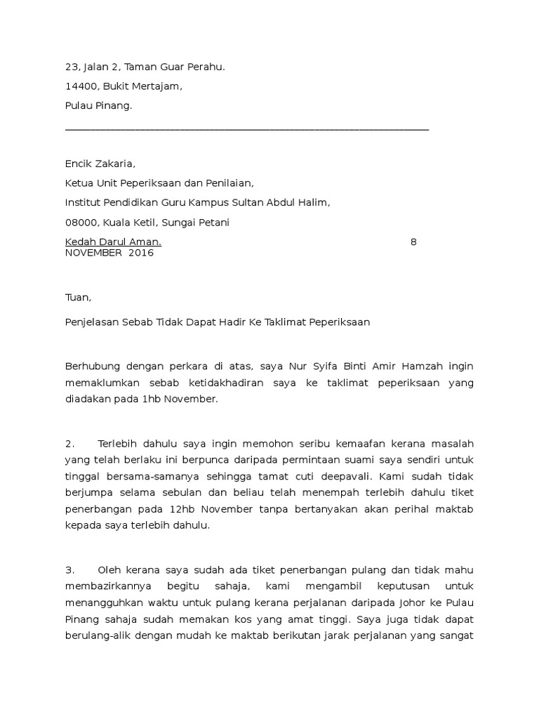 Contoh Surat Tidak Dapat Hadir Taklimat Peperiksaan Pdf