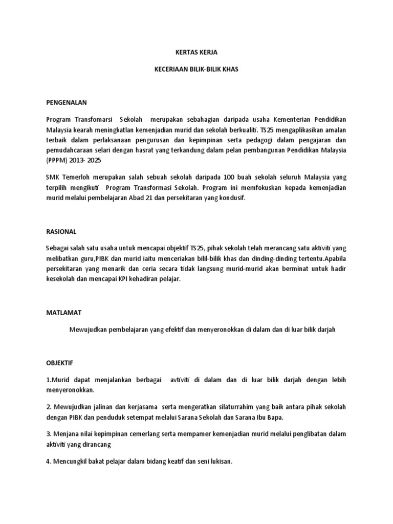 Kertas Kerja Keceriaan Bilik Bilik Khas Pdf