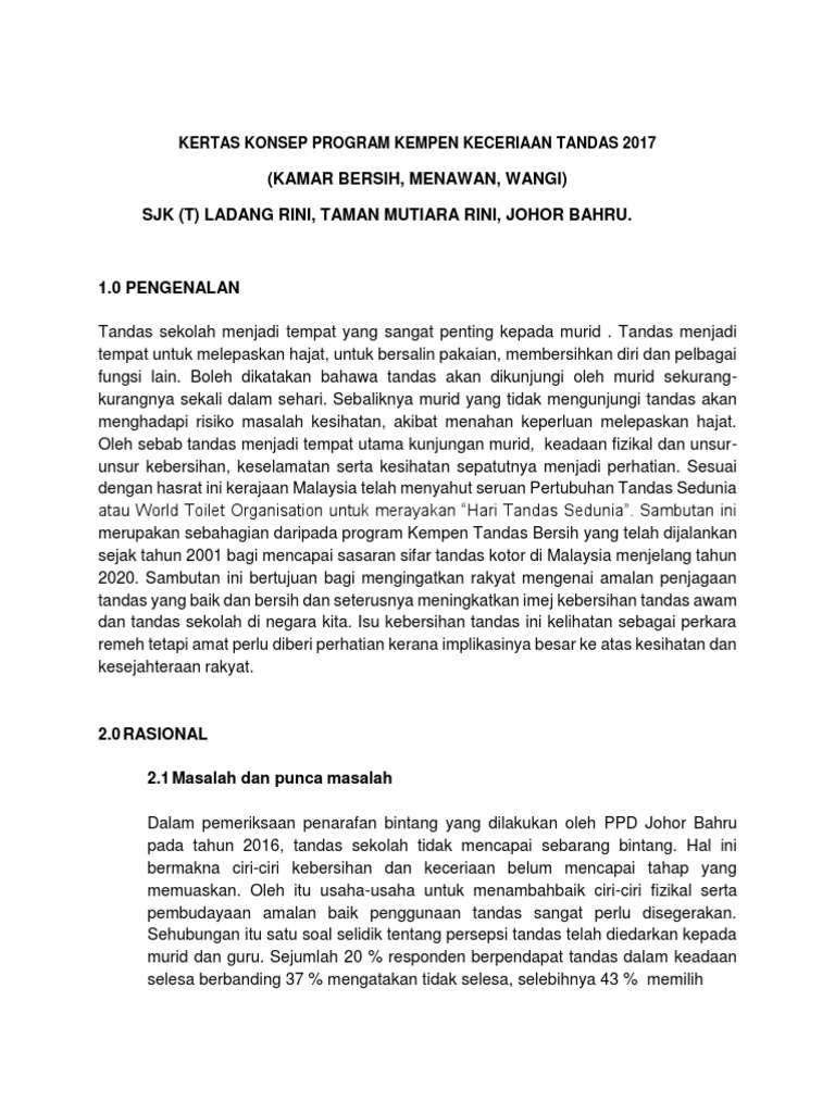 Kertas Kerja Keceriaan Tandas Sekolah Pdf